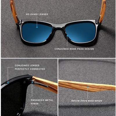 نظارة شمسية مربعة كينغسيفين للرجال نساء حمار وحشي الخشب مرآة