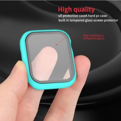 زجاج مقسى + حالة من سلسلة Apple Watch 7/6/5/4/3/2/1/SE 38MM 40 41 مم 42 44 مم 45 مم 45 مم
