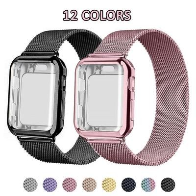 الحالة - حزام حلقة ميلانو لفرقة Apple Watch 38 مم 42 مم 40 مم 44 ملم سوار الفولاذ المقاوم للصدأ