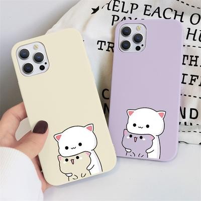 Cute Cat Cat Soft Case لـ iPhone 12 11 Pro Max XR 7 X Samsung A52 A32 A50 A51 S21 A12 A72 Hua