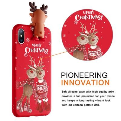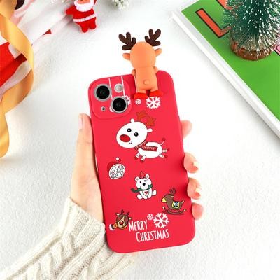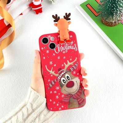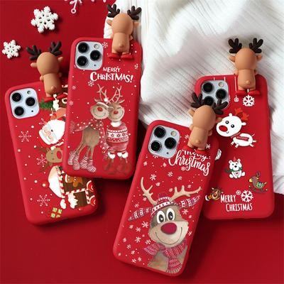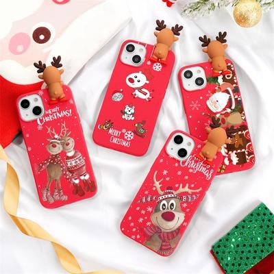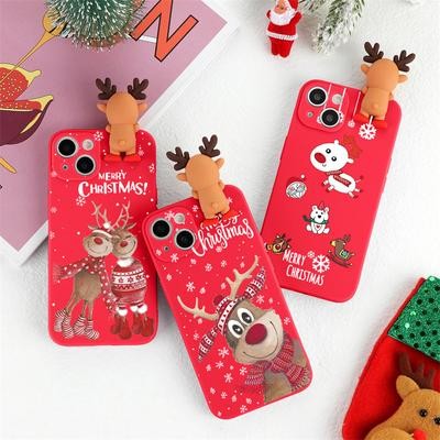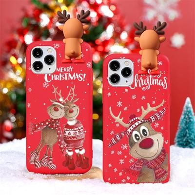 3D Cartoon Cute Deer Christmas Doll TPU Case لـ iPhone 13 12 11 Samsung A53 A52 A51 A50
