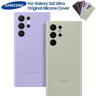 علبة السيليكون السائل الأصلي لـ Samsung Galaxy S22 Ultra 5G S22ULTRA SM-S908 حريري مع