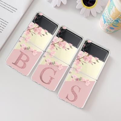 بالنسبة إلى Samsung Galaxy Z Flip 3 4 z Flip3 Flip4 Case Cherry Blossom الأبجدية الأولي الشفافة بقوة