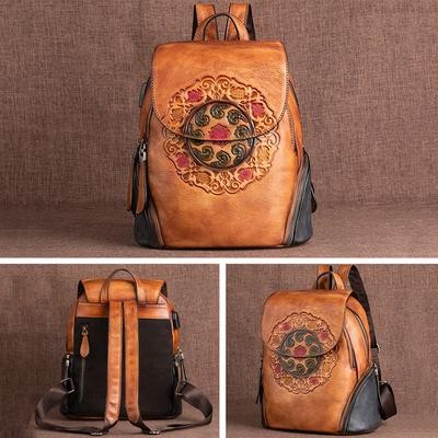 титульная страница > الحقائب وحقائب السفر > رجعية رجعية حقيبة ظهر جلدية حقيبة نساء الشتاء مصنوعة يدويًا حقيبة الأزهار الكبيرة