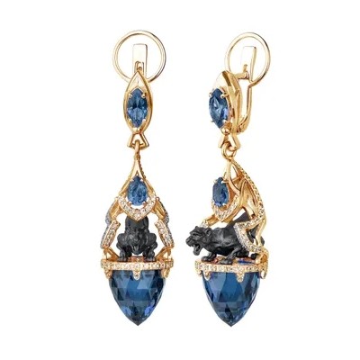 أقراط الطبيعة البرية دي آرس مع الذهب مع لندن توباز والماس