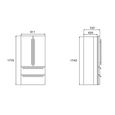 أبعاد الجهاز (بدون مقابض) (HXWXD): 1775x910x620 مم